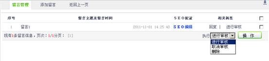 3.在“在留言列表”,设置留言的SEO配置、修改、回复、是否审核,删除等操作。